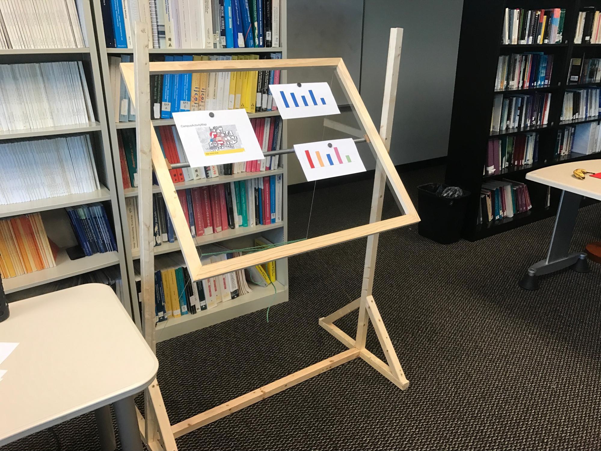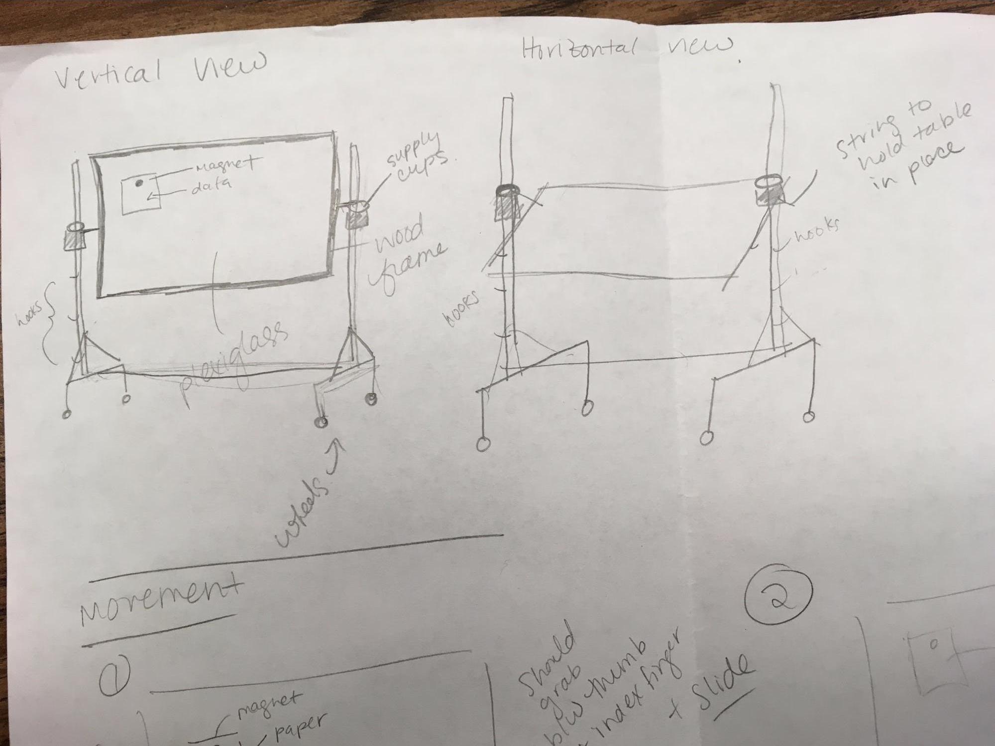 The Health Easel prototype allows users, both patients and doctors, to conduct Wizard of Oz using magnets that hold paper visualizations from the front and back to accurately mimic window movement on a transparent touch display.