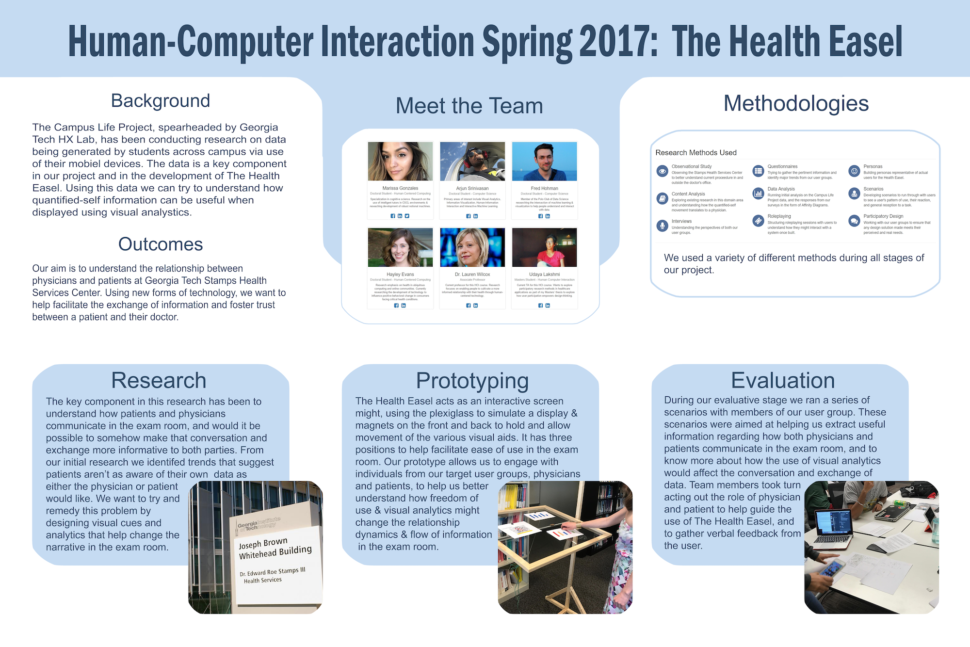Ar the end of the semester, our class held a public poster session where our team presented the Health Easel.