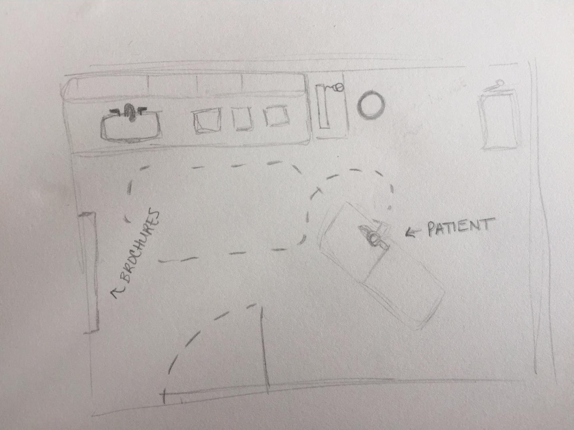 - The current appointment space layout is centered around the patient chair.